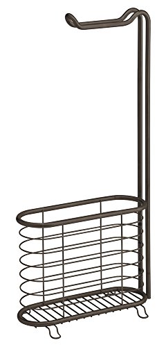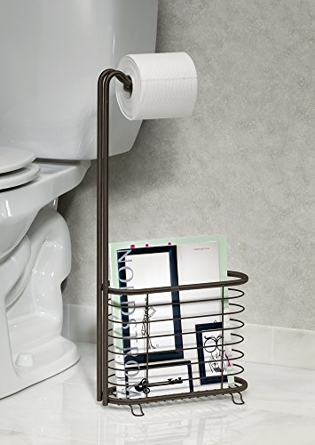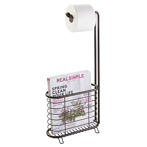 mDesign Free Standing Toilet Paper Holder with Newspaper and Magazine Rack for Bathroom - Bronze