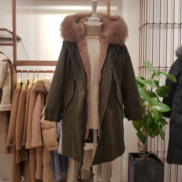 풍성한 핑크폭스퍼와 안감 천연토끼털로 만들어진 고급스런 야상점퍼입니다.안감이 완전히 분리되어 따로따로 입을수있는 실용적인 점퍼입니다.허리스트링 조절끈이 있어 슬림하게 입을수도 있는 겨울 야상점퍼입니다.블랙은 퍼전체가 같은 블랙이라 시크함이 돋보입니다