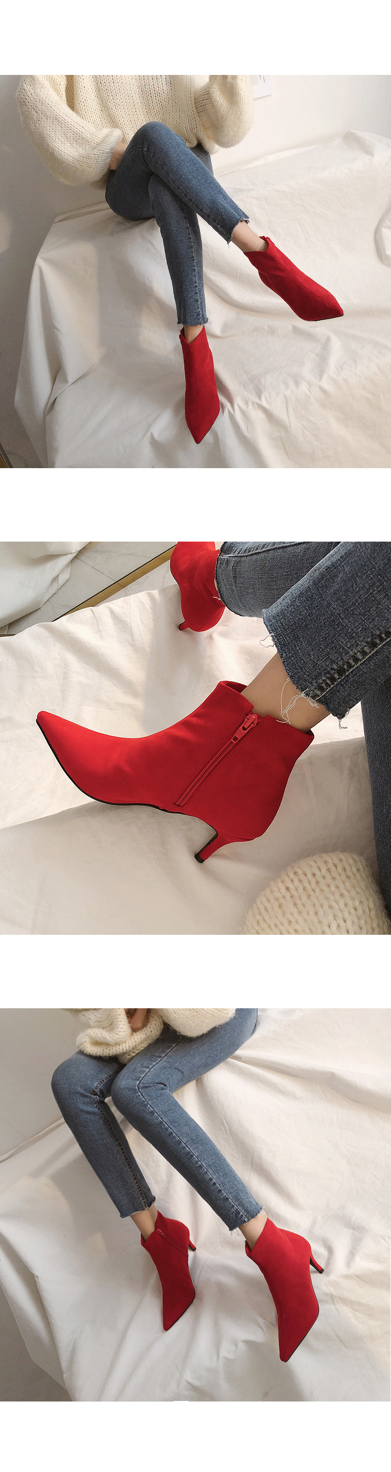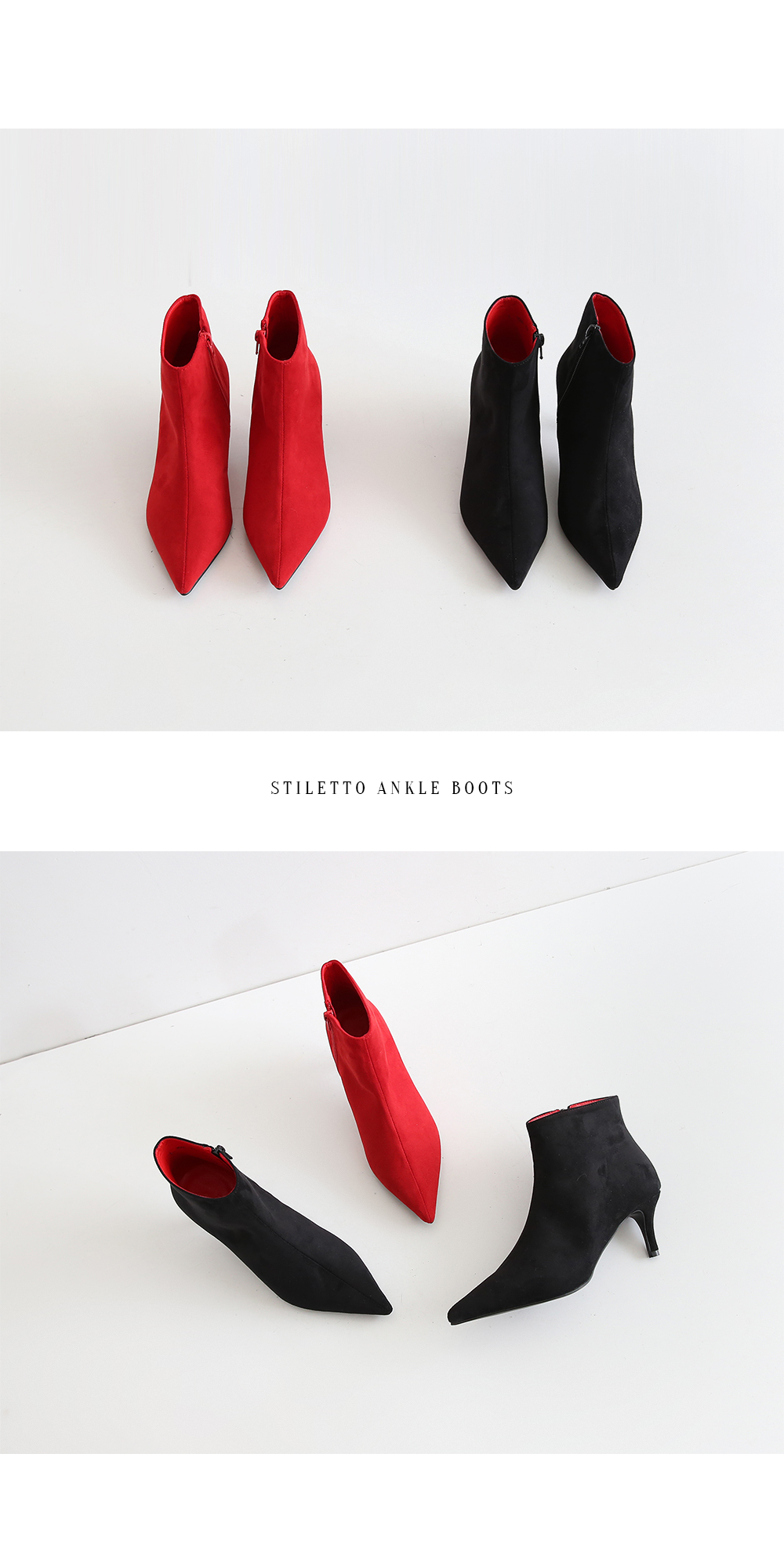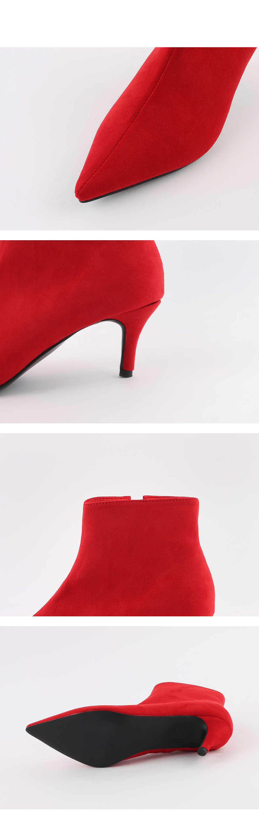 강렬한 색감의 레드 컬러가 섹시한 데일리 앵클부츠입니다.