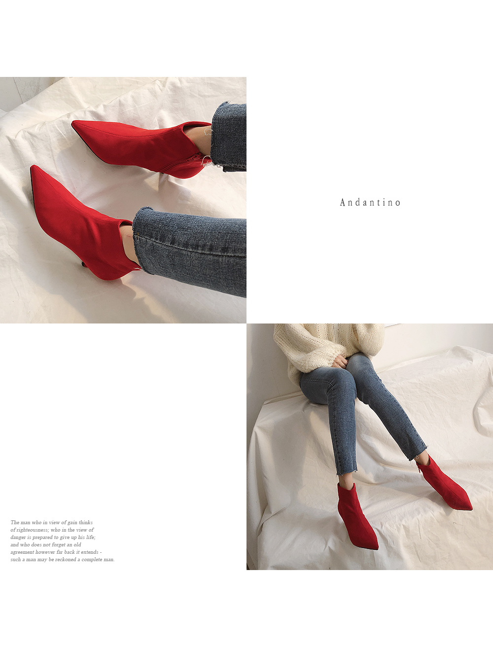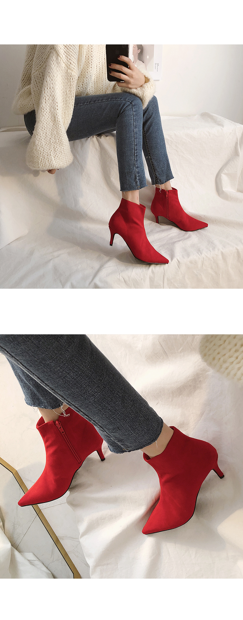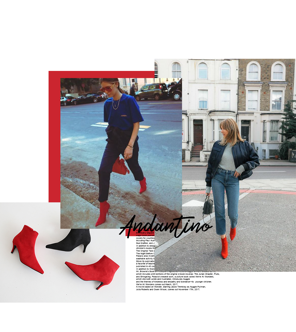 강렬한 색감의 레드 컬러가 섹시한 데일리 앵클부츠입니다.