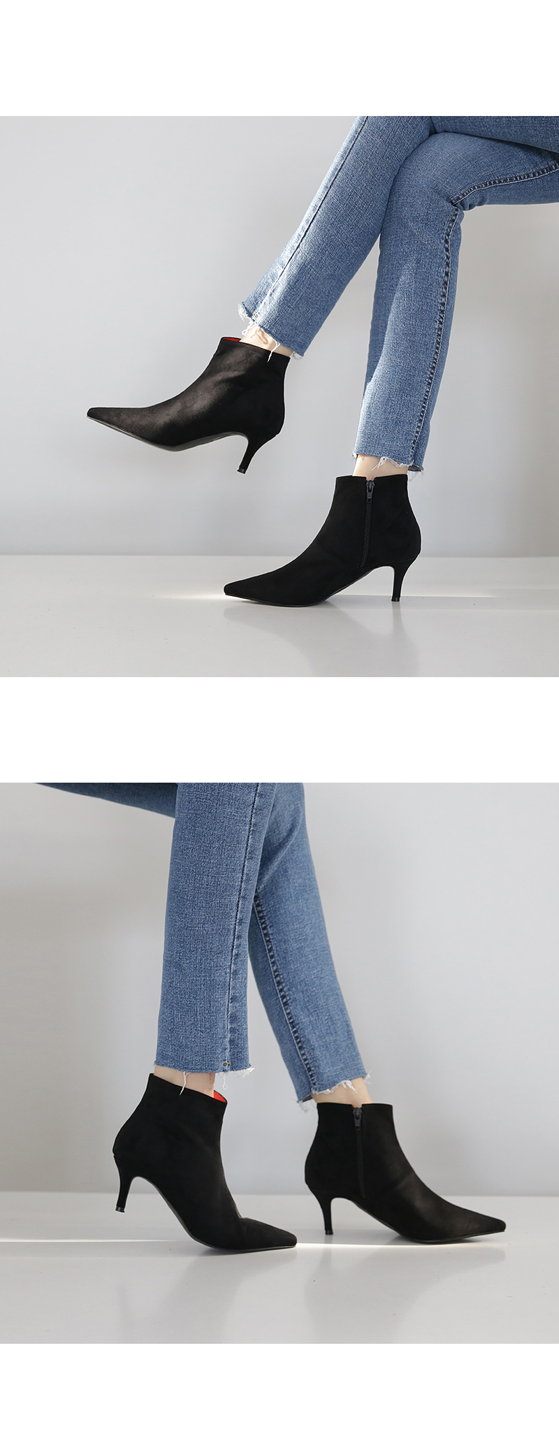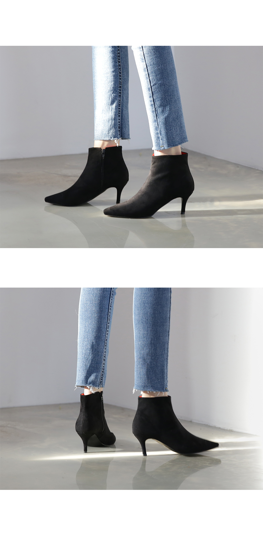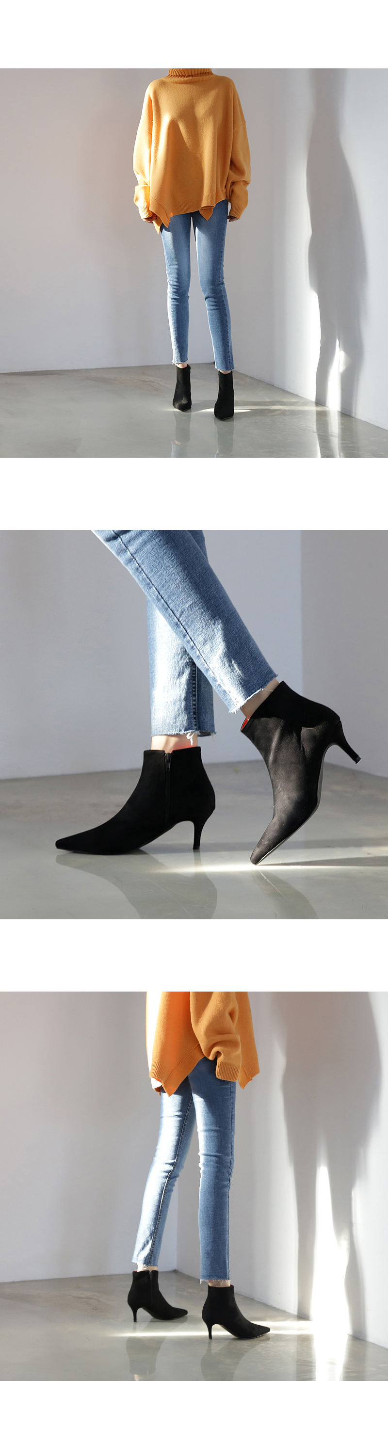 스틸레토 쉐입이 좀 더 여성스럽게 착화되는 듯 하고 와이드하게 발목을 감싸주어 슬림한 레그라인을 완성시켜줍니다.