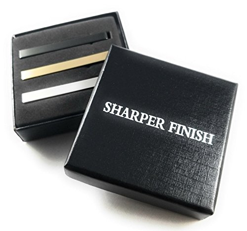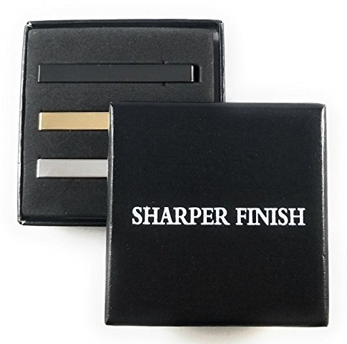 Studio : Sharper Finish Publisher : Sharper Finish Binding : Jewelry Product Description Complete your wardrobe with this set of 3 classy tie clips. These tie bars will keep you looking neat and professional, and at 2.1 inches, will fit best with standard width ties. This beautifully gift-boxed set includes solid tie bars in the 3 most common colors, solid gold-tone, solid silver-tone, and solid black. The perfect gift for the well dressed gentleman, these tie clips complete the professional appearance. This 3 pack will ensure that you have the proper tie clip for every occasion. 0