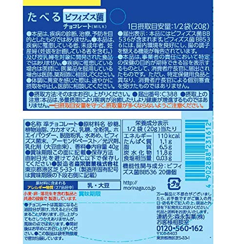 原材料:砂糖、植物油脂、カカオマス、乳糖、全粉乳、ホエイパウダー、脱脂粉乳、水あめ、ビフィズス菌末、アーモンドペースト/光沢剤、乳化剤(大豆由来)、香料