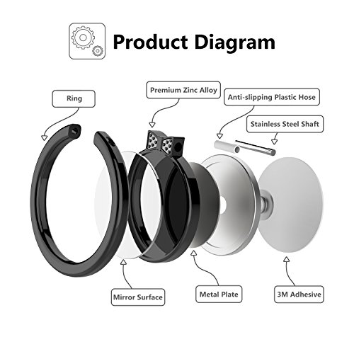 ICHECKEY Smart Phone Ring Holder MIRROR SERIES Stylish 360° Adjustable Ring Stand Grip Mount Kickstand for iPhone 7/7 Plus, Galaxy S8/S8 Plus and Almost All Cases/Phones - Bowknot Black