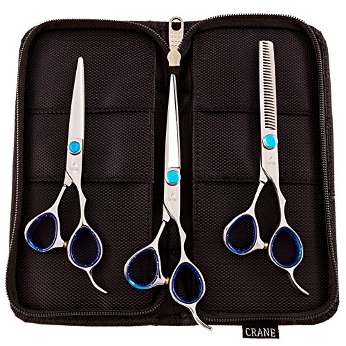 Crane 3-piece Haircutting Set: Two Shears (5.5 inch & 6.0 inch) plus One Thinning Shear (30 Tooth) with Case
