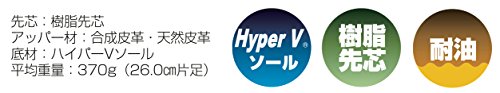 -. Feature : 先芯:樹脂先芯 / アッパー材:合成皮革・天然皮革 / 底材:ハイパーVソール / 平均重量:370g(26.0片足) / 特徴:安全スニーカー(紐) / 耐油