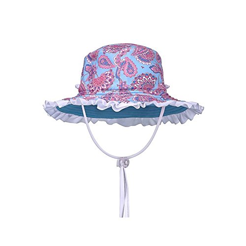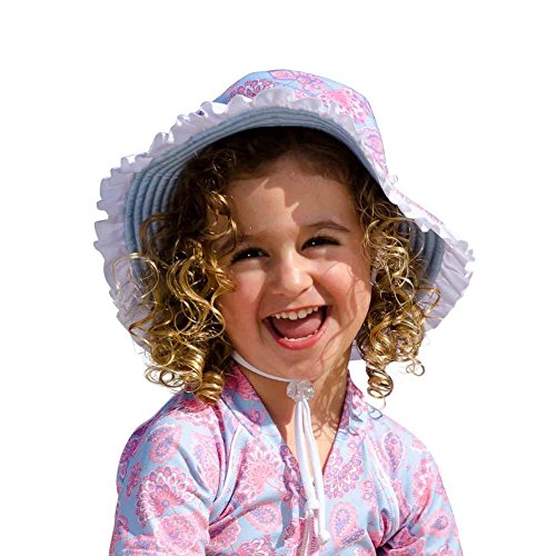 Studio : Sun Emporium Publisher : Sun Emporium Binding : Apparel Product Description Girls light blue Sienna Paisley reversible wide brim hat from Sun Emporium will keep her safe from the sun. UV protection - UPF 50 ARPANSA validated. Comes with a vibrant boho Kashmir inspired print, delicate white ruffle and adjustable strap. 0