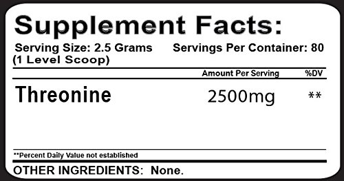 -. Binding : Health and Beauty -. Brand : Muscle Feast -. EAN : 0814722022246 -. Feature : Pure L-Threonine Powder / Unflavored / Essential Amino Acid / Helps support immune system -. IsAdultProduct : 0 -. Label : Muscle Feast -. LegalDisclaimer : This product is not meant to diagnose, treat, or cure any illness, ailment or disease. Please consult with your medical professional before taking this product. This product may cause headaches and upset stomach. -. Manufacturer : Muscle Feast -. MPN : Threonine 200 -. PackageQuantity : 1 -. PartNumber : Threonine 200 -. ProductGroup : Health and Beauty -. ProductTypeName : HEALTH_PERSONAL_CARE -. Publisher : Muscle Feast -. Studio : Muscle Feast -. Title : Muscle Feast L-Threonine -. UPC : 814722022246