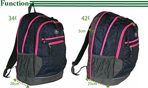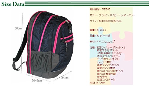 -. Feature : サイズ:約W(幅)34× H(高さ)50×D(マチ)20+5cm / カラー:4色(ブラック・ネイビー・レッド・グレー) / 重量/容量:約350g/約34L~42L