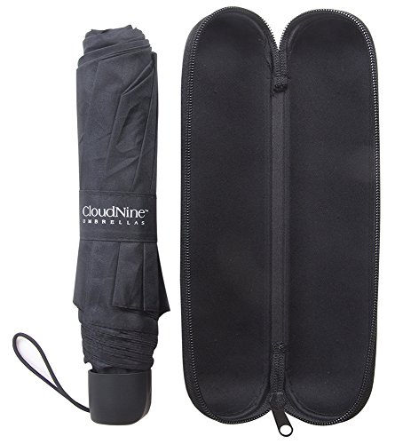 -. Brand : Cloudnine Umbrellas -. Color : Black -. EAN : 0725585405902 -. Feature : Compact Super Mini / Folds to 9 inches / Large 42" Arc / High quality material with rubber handle / Soft shell zipper case -. Model : GloveBox Mini -. PackageQuantity : 1 -. ProductGroup : Apparel -. ProductTypeName : LAGE -. Title : Cloudnine Travel Glovebox Super Mini Umbrella With Zipper Carry Case -. UPC : 725585405902