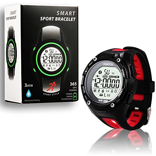 -. Feature : Wireless Notifier - The X-Watch notifies you of incoming calls/messages/phone notifications by highlighting the icon on the screen and vibrating. / SmartWatch Features - The X-Watch is packed with features for the active consumer such as Calorie Burner, Pedometer, Distance Traveled, and Chronograph / CR2032 Battery Cells - Top notch batteries were chosen for this design as active users are rarely near a charging station. Rated for up to 1 Year of Active Usage, and 2 Years in standby mode on a single set of batteries, you can keep the energy going! / Red Design & Water Proof - Using high quality materials directly sourced, we were able to create a watch that offers phenomenal battery life, and the ability to withstand the demands of an active user. (Waterproof up to 30m) / Remote Shutter Update(NEW!)- Functionality now available on Apple iOS and Android OS