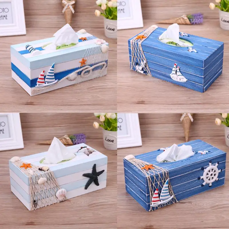 Wooden Tissue Boxes the Mediterranean Sea Napkin Tissue Case Container Towel Napkin Tissue Holder