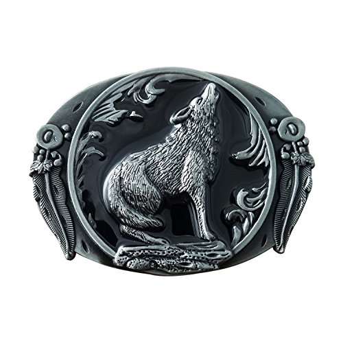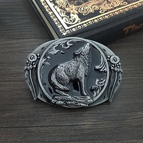 (QUKE)/Accessories/Belts Buckles/DIRECT FROM USA/QUKE Vintage Western Cowboy 3D Wild Wolf Howling Leaf Belt Buckle Gray Tone