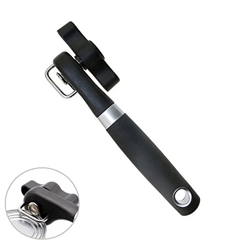 UNIQUE DESIGN - Our can opener is made of high end food grade stainless steal and ABS material, the ergonomic soft anti-slip grips handle allows for smooth cutting when opening cans without the hand slipping, unique design makes it very safe to use.