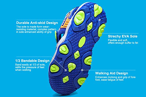 -. Feature : HOOK AND LOOP CLOSURE: Easy and convenient to get on / off with adjustable strap closure, Multiple straps keep the foot in place / COMFORTABLE & FIT: Soft and flexible leather material protect the little feet, comfy for all day / Durable SOLO: The sole is made form wear- resisting material, complex pattern in sole enhanced ability of grip / CLOSED TOE: Protecting little feet from scrapes and stubs / PERFECT FOR SUMMER: Ideal for casual walking at park, garden, beach and even any indoor activities.