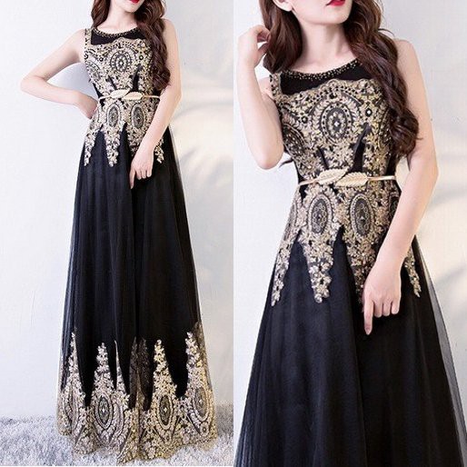 パーティードレス ロング丈 マキシ ワンピース ゴージャス ラメ ビーズ アラベスク模様 ノースリーブ 大人 上品 エレガント お呼ばれ drgz2263