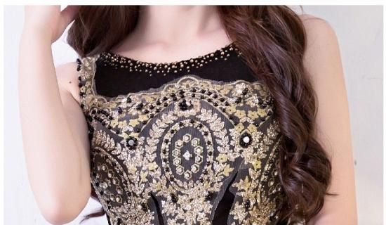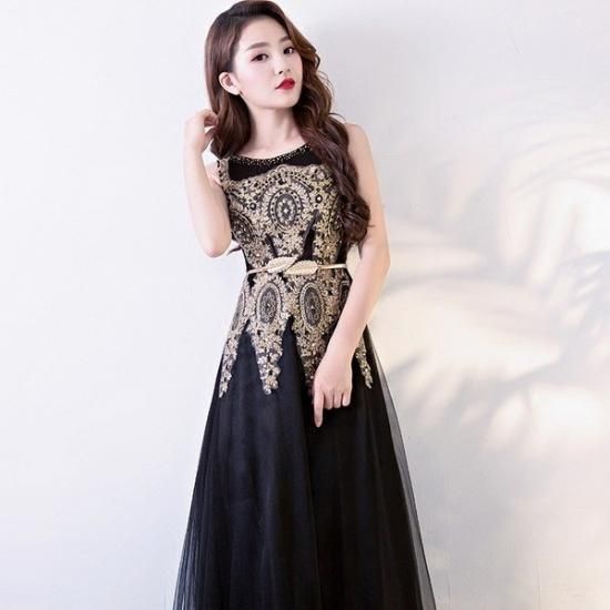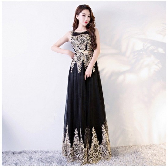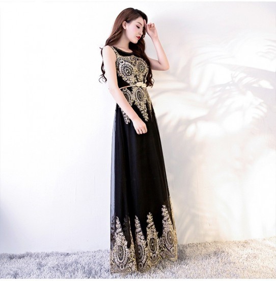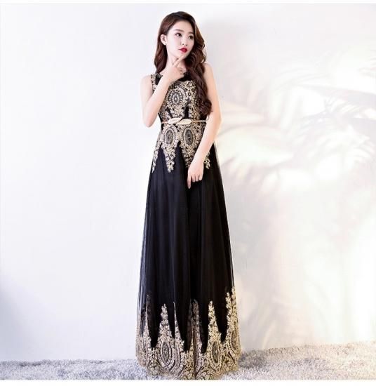 アラベスク模様がとてもゴージャスな、ノースリーブロング丈ドレス。