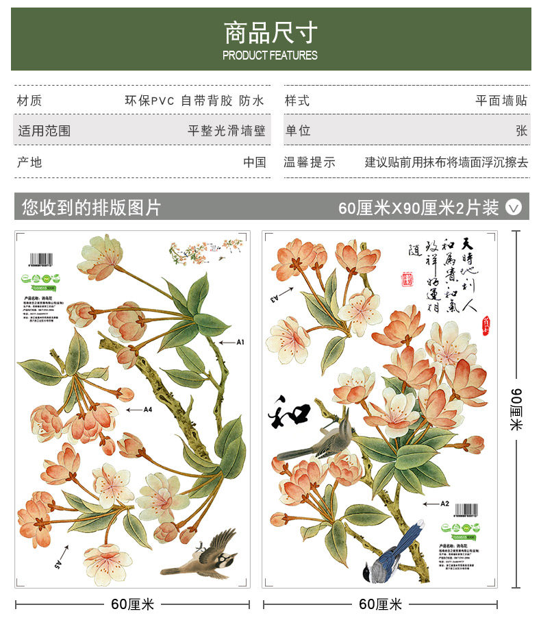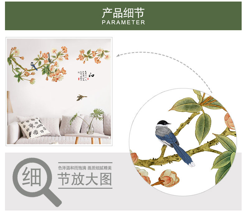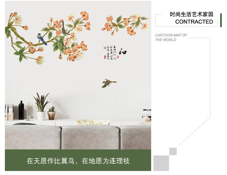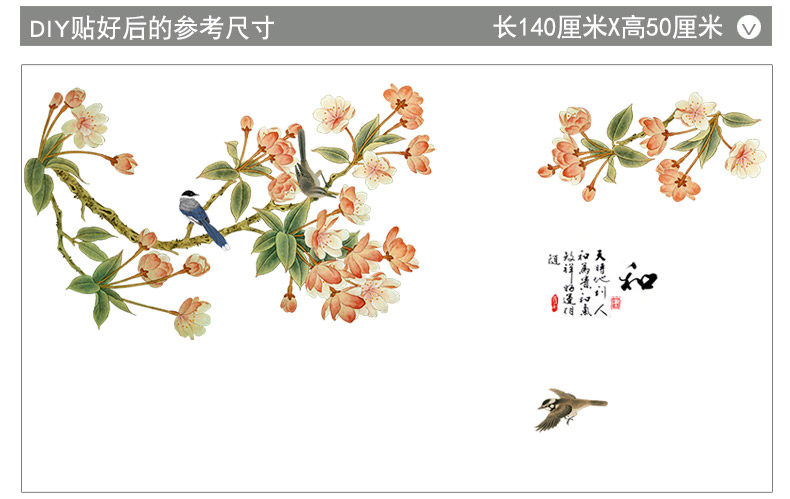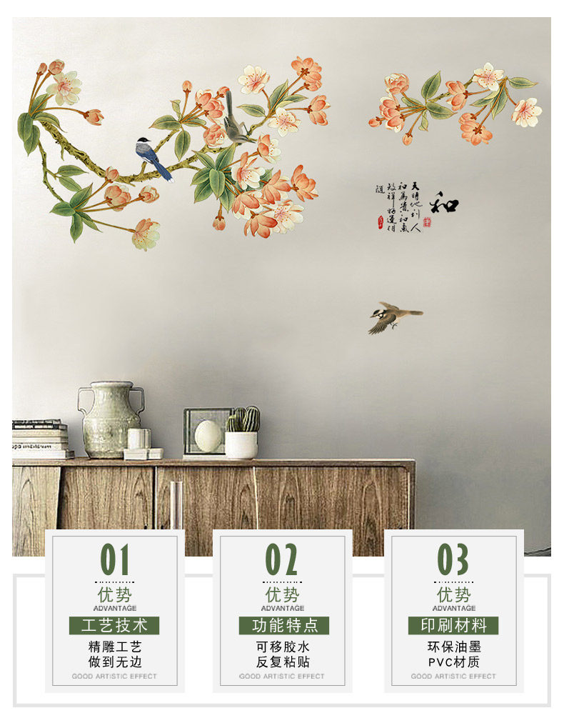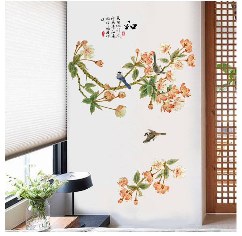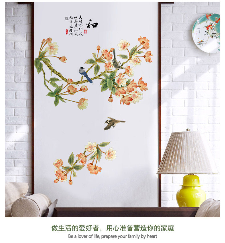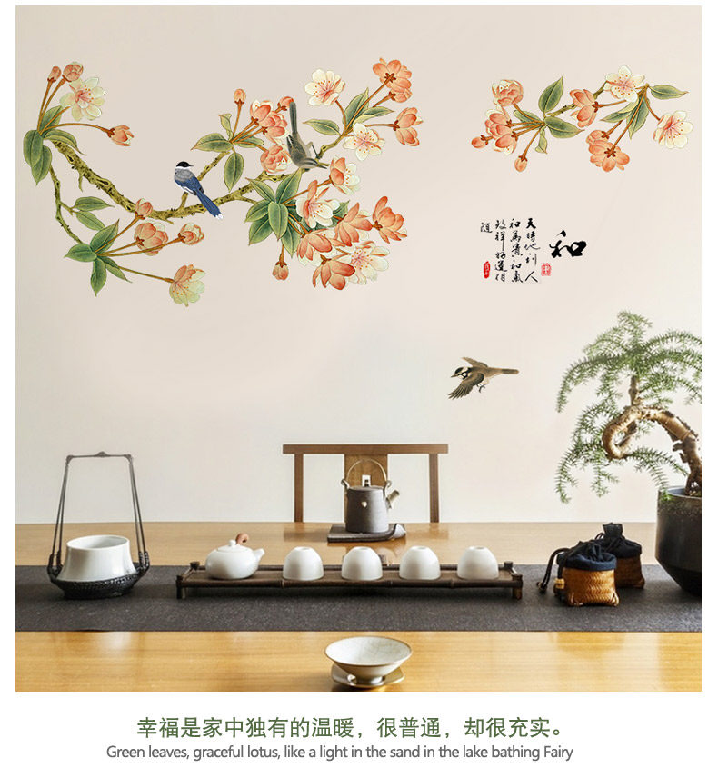 中国风墙贴房间装饰品客厅墙上贴画卧室温馨墙上防水贴纸墙纸自粘
