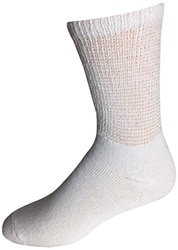 -. Binding : Apparel -. Brand : SOLE -. Color : White -. Department : mens -. EAN : 0859575006418 -. Feature : Ideal for diabetics, non-binding white everyday casual crew socks w/ loose fit, but stays in place / Lightweight and breathable for moisture management and comfort / 3 pairs, sock size 10-13 fits men's us shoe size 6-11 / Made in USA with eco-conscious yarns. American made. Responsibly sourced / 86% cotton, 11% polyester, 3% spandex -. Label : Sole Good -. Manufacturer : Sole Good -. Model : 100W3 -. MPN : 100W3 -. NumberOfItems : 3 -. PackageQuantity : 1 -. PartNumber : 100W3 -. ProductGroup : Apparel -. ProductTypeName : SOCKSHOSIERY -. Publisher : Sole Good -. Size : 10-13 -. Studio : Sole Good -. Title : Sole Good Non-Binding Casual Crew Socks, White, Size 10-13, Pack of 3 -. UPC : 859575006418