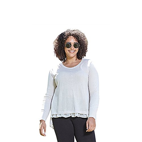 -. Binding : Apparel -. Brand : Always For Me -. Department : womens -. Feature : Georgette Ruffle at hem of sweater / Soft Cotton Jersey Knit / Loose Comfortable Fit / Ribbed Details at neck and cuff / 100% Cotton. Manufacturer Warranty Limited to 1 year. -. ProductGroup : Apparel -. ProductTypeName : SWEATER -. Title : Always for Me Plus Size Sweater Long Sleeved Georgette Trimmed Solid Cotton