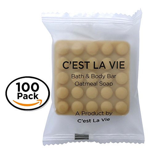 100 Bulk Pack - Oatmeal Soap Bars by C'EST LA VIE - 40g / 1.4oz - Hotel Guest Travel Amenities - Individually Wrapped in EV Responsible Packaging,...