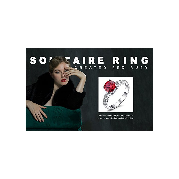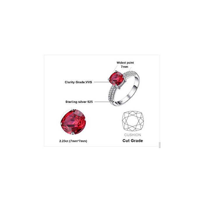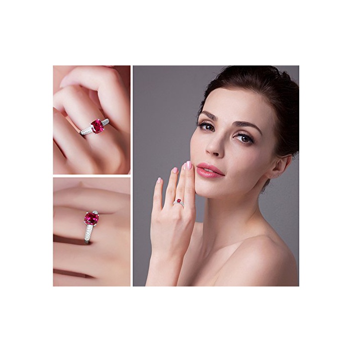 Jewelrypalace JewelryPalace 2.8ct 쿠션 컷 인공 탄생석 5월 루비 반지 심플 스타링 실버 925 링 레이디스 인기