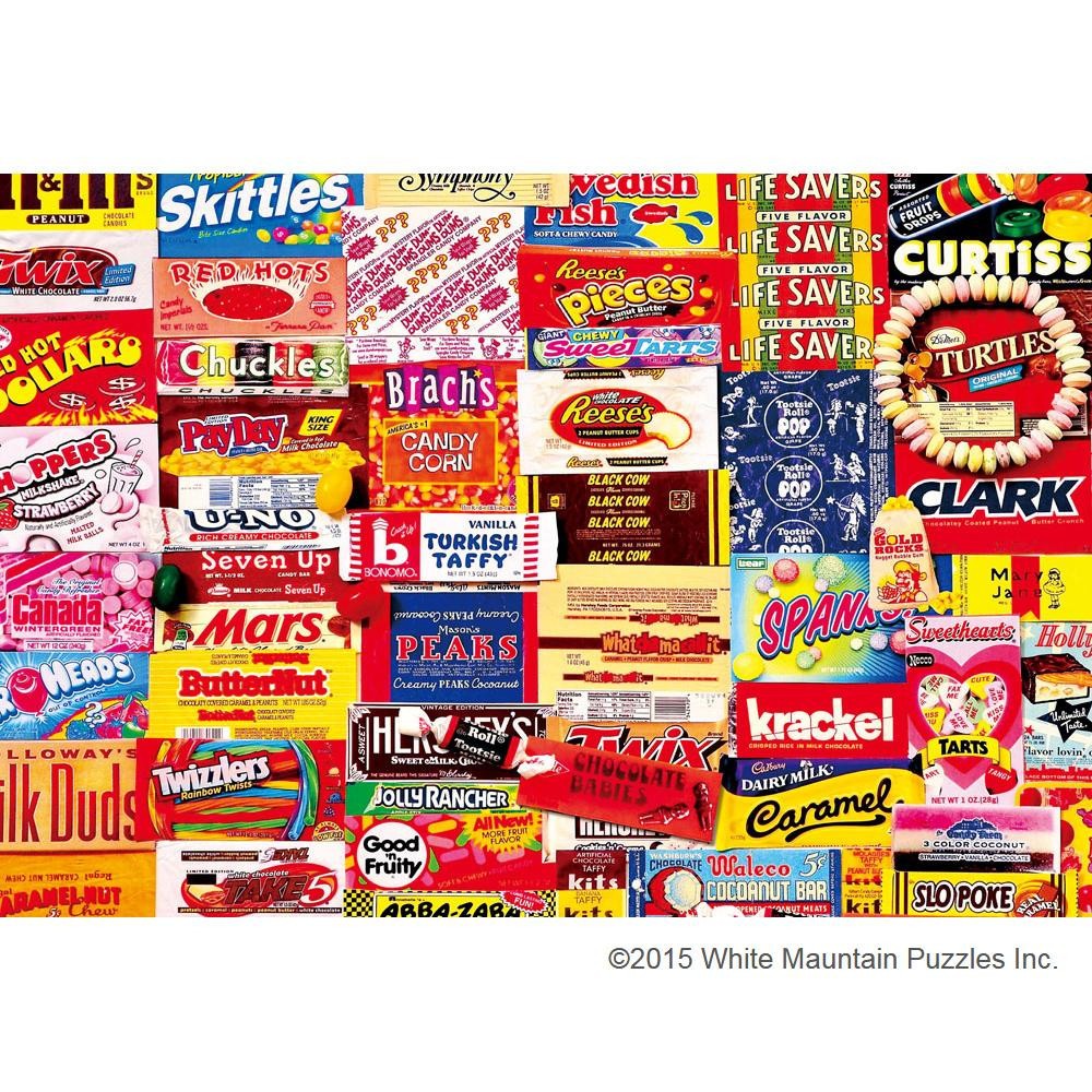 キャンディー・チョコレートのクラシックなパッケージをコレクションし、コラージュしたアート作品のパズルです。