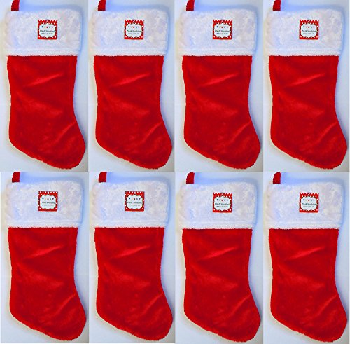18" Plush Deluxe Red Christmas Stocking (8 Pack) W/White Plush Cuff & Red Hanging Tag