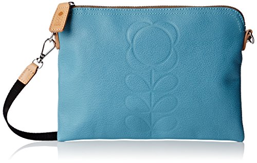 Embossed flower' leather travel pouch with leather trims and contrast colored zip closure. Inside details include linear stem jacquard lining, small leather logo card holder pocket, small patch pocket for a passport and mobile slip pocket. Silver colored hardware. Includes a detachable long strap in double sided webbing that allows the bag to be worn as a shoulder bag or across the body (length 112cm) or detached and used as a pouch or clutch.