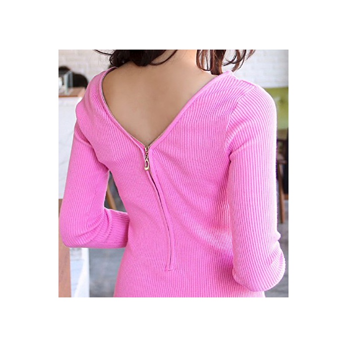 Smile lala 【Smile LaLa】 레이디스 원피스 원피 톱스 미니 긴 소매 섹시 ZIP 흉차이 타이트 슬림 예쁜 춘복 추복