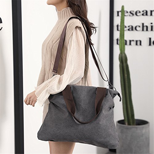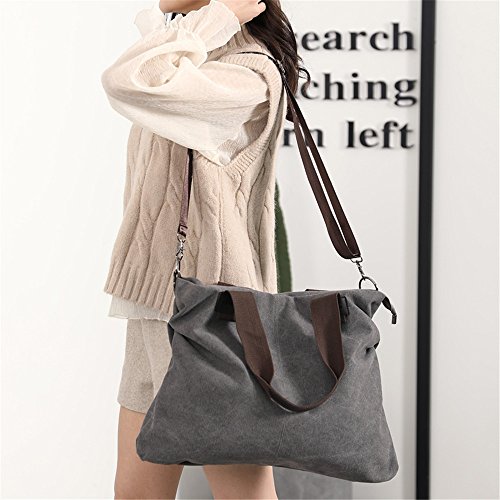 -. Feature : This large capacity women shoulder bag made with high quality canvas,polyester lining,durable and fashionable / 16" (L) x 12" (H),the width of the bag changes depending on what is loaded ,unit weight 0.9 pounds,Weight lighter but durable,removable crossbody strap can adjutable between 24" - 47" / There are one main pocket and a back zipper pocket,a small pocket with zipper and two small pockets inside the main pocket / Large capacity design can comfortably hold your laptop, iPad, phone, wallet, cosmetic, umbrella, books, magazines and Other Things / Christmas white elephant gift, fashion style but simple design large capacity women shoulder bag handbag suitable for work, travel, shopping, school and other casual occasions and formal occasions