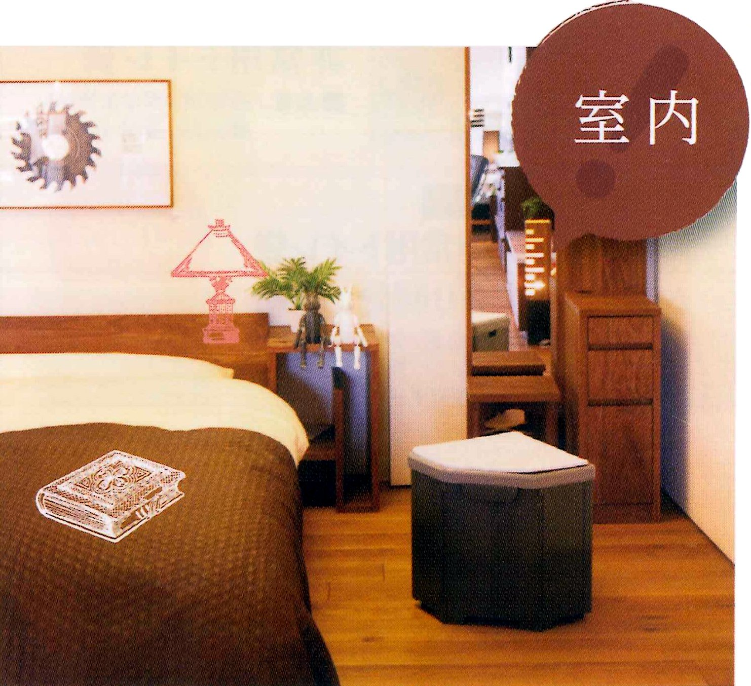 I usually use it as a corner chair, and in emergency it is transforming into a toilet Suguremono.