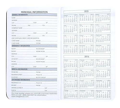 Look ahead and stay organized with this compact Pocket Planner from AT-A-GLANCE. Improved paper resists bleed through*. Two years of planning in one handy and compact sized calendar. Use it to track all your appointments, vacation days, birthdays, meetings and upcoming events and take it with you anywhere for on-the-go planning. 3.5 x 6.12 inch page size. Printed on quality paper containing 30% post-consumer waste; black simulated leather cover. *Under normal usage, this improved paper resists ink bleed with common writing instruments such as pencils, ballpoint pens, gel pens, felt tip pens and highlighters. Made in the U.S.A.