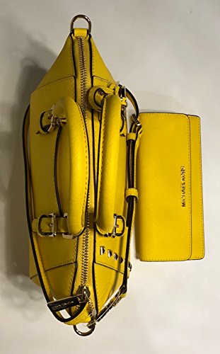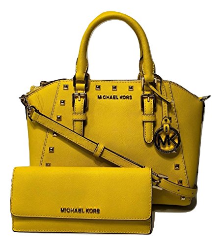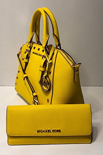 Michael Kors Ciara Studded MD Messenger Handbag bundled with Michael Kors Jet Set Travel Flat Wallet (Citrus)