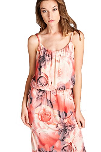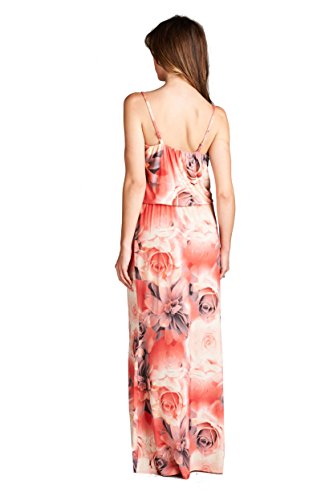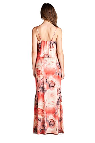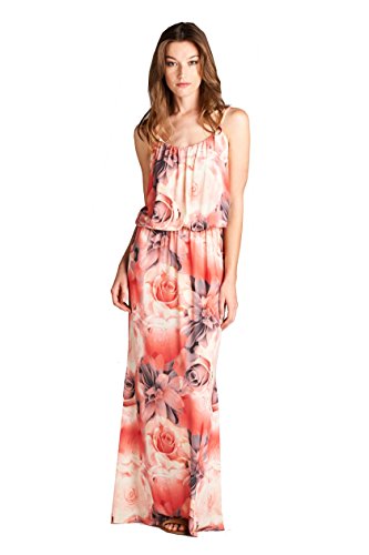 On Trend Women's Floral Rose Blouson Maxi Dress