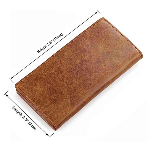 P.KU.VDSL MEN'S VINTAGE LOOK GENUINE LEATHER LONG BIFOLD WALLET SPECIFICATIONS: - Dimensions: A: 3.35 x 7.3 x 0.8 inches (8.5 x 18.5 x 2 cm) / B: 7.5 x 3.5 x 0.78 inches (19 x 9 x 2 cm) - Net weight: 0.25lb / 110g - Material: 100% Genuine Crazy-Horse / Waxy Leather - Inside Lining: High Quality Cowhide STRUCTURE FOR A: - 1 x ID Window pocket - 1 x Zipper pocket - 3 x Bill Compartments pockets - 12 x Card slot pockets STRUCTURE FOR B: - 11 x Card Holder - 2 x Cash pocket - 2 x Additional Pocket - 1 x Photo ID Window - 1 x Zipper pocket SUITABLE OCCASIONS: Business / Office / Casual (A wonderful gift for many occasions!) PACKAGE INCLUDES: 1 x P.KU.VDSL Genuine Leather Wallet NOTICES: 1. It's normal that there will be a bit smell when you get the wallet, because its the natural leather smell when it's new and unused. It will fade away if you open the pocket and put it in a ventilate place for couple hours. 2. Due to the difference between different monitors and light, the picture may not reflect the actual color of the product. Thank you! 3. Please allow 0.2-0.44in measuring deviation due to manual measurement. MAINTENANCE OF WAY: A small amount of water or detergent to clean, not dry, exposure, ironing, bleaching. CUSTOMER SERVICES: P.KU.VDSL Satisfaction Guaranteed -- If you have any problem with this wallet, just let me know,we will try our best to solve it for you. 0