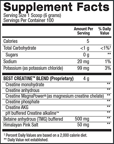 ReleaseDate : 2016-11-02 Studio : BPI Sports Publisher : BPI Sports Binding : Health and Beauty Product Description Creatine is a nutrient that occurs naturally in the body and in some foods. It functions as an energy source in your muscle cells, helping improve muscular output and reduce fatigue during rigorous physical exertion. BEST CREATINE powder makes supplementing with creatine effortless by combining several forms of creatine to help you build more strength and increase lean muscle. However, not just any creatine. We’ve combined the 6 top forms of creatine, including the most heavily researched, Creatine Monohydrate, to give you the most advanced and effective creatine formula possible. BEST CREATINE has been designed to increase strength, muscle growth, performance and recovery. Not to mention no loading and no bloating. 0