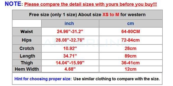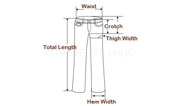 Size | Waist | Hip | Crotch | Length | Thigh | Hem Width | ||||||
