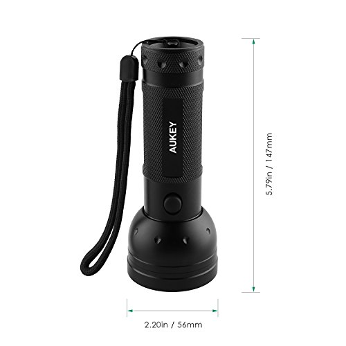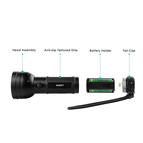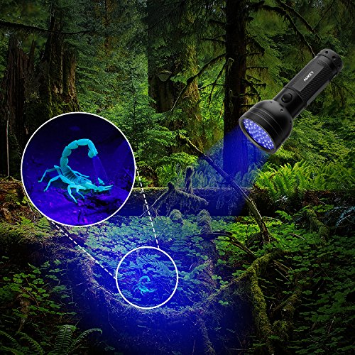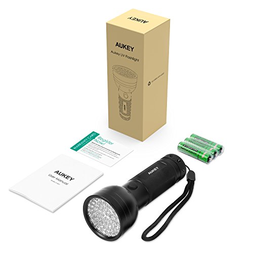 AUKEY UV Flashlight, 51 LEDs for Home & Hotel Inspection, Pet Urine & Stain Detection, Spot Counterfeit Money (Batteries Included)