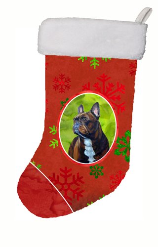 Caroline's Treasures LH9340-CS French Bulldog Red and Green Snowflakes Holiday Christmas Stocking, 11 x 18", Multicolor