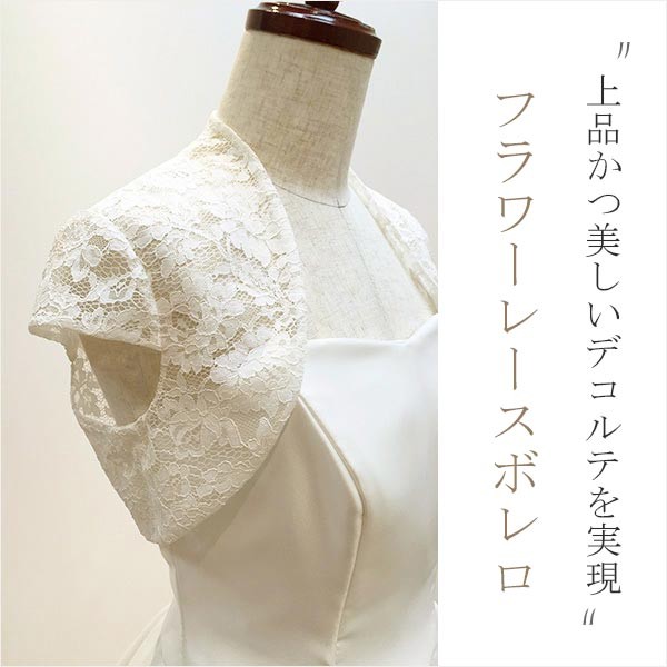” NEW フラワーレースボレロ ”優美なレースが女性らしさを際立たせてくれる、シンプルなデザインです。肩先が隠れる程度の短めの袖が、軽やかで可愛らしさをプラス。優しいカーブの前開きが、デコルテ部分を美しく見せてくれます。カラーは、オフホワイトになります。*こちらはボレロのみの商品となり、ドレスは付属いたしません。 ご注意ください。【検索キーワード】ウェディングドレス/ウエディングドレス/白ドレス/マリッジ/ブライダル/ガーデンウェディング/フォトウエディング/花嫁/新婦/ブライズ/挙式/結婚式/披露宴/パーティ/パーティー/チャペル/教会/人前式/セレモニー/海外/リゾート/ホテル/式場/2次会/1.5次会/前撮り/アクセサリー/ヘアアクセ/ウエディング小物/ウェディング小物/Wedding/Bridal/ギフト/プレゼント/贈り物/花/フラワー