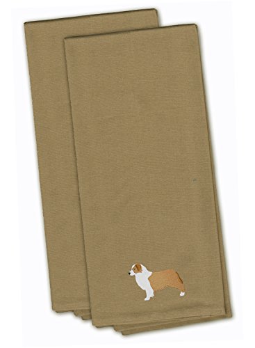Caroline's Treasures BB3433TNTWE Australian Shepherd Dog Tan Embroidered Kitchen Towel (Set of 2), 28" x 19", Multicolor
