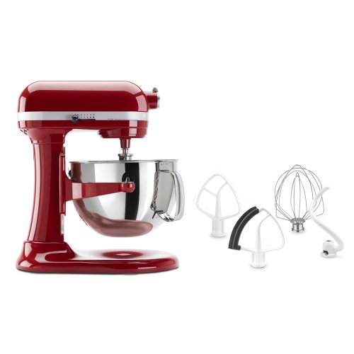 The direct-drive transmission with 575-watts and 67-point planetary action mixing will handle your mixing needs with ease. And the wide bowl capacity supply this mixer with the ability to mix large batches of heavy batter and dough. The professional bowl-lift design raises bowl into mixing position. Features: 5.5-Qt Polished Stainless Steel Wide-Mouth Bowl with Handle Direct Drive Transmission, All-Steel Gears, and All-Metal Construction 575-Watts of Power Commercial-Style Motor Protection Multipurpose Attachment Hub with Hinged Hub Cover Includes: 5.5-Qt Polished Stainless Steel Wide-Mouth Bowl with Handle Dough Hook Wire Whip Flat Beater Bonus Flex Edge BeaterFeature