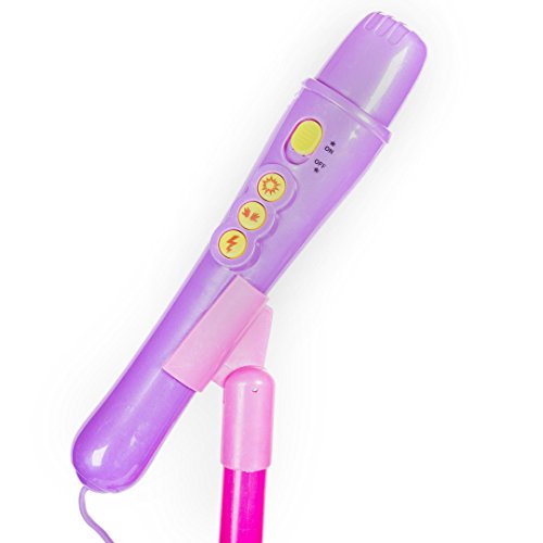 - Feature : Children pretend play microphone play set - Real working Microphone with amplifier and Speaker, Light Effects, Melodies / Elegant look, Unique design, Adjustable heights, Adjustable Volume, Preloaded Music, Durable construction, Gift Packaging / Record and replay feature, foot pedal and control the music with foot, MP3,CD player line in, or connect to home spearker via your own input cableRecord and replay feature, foot pedal and control the music with foot, MP3,CD player line in, or connect to home speaker via your own input cable / Unique style, High quality materials, ABS plastic, Non Toxic paint, this is the promise of Kids Authority. 30 Days Money Back No question asked. / Perfect Holiday Christmas gift idea for boys, girls, children. Why spend so much on national brand?