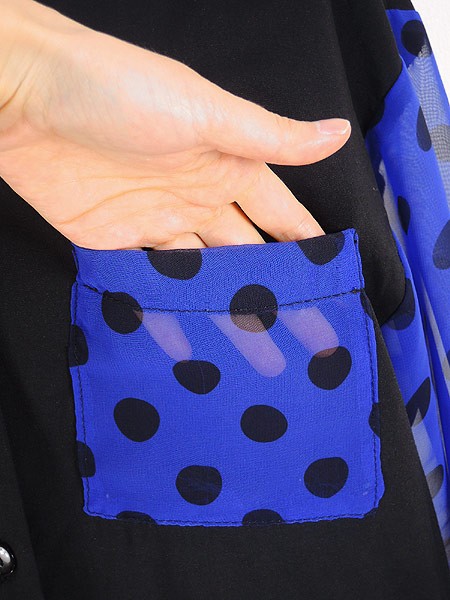 Ladies ブランド- カラー黒・青紫 メール便可 コンディション★★★ 素材レーヨン・ポリエステル 表記サイズM スタッフコメント一番上ボタンホール、ホツレ有りますが着用に問題ありません。 実寸サイズ 着丈 71 cm 身幅 48 cm 肩幅 48 cm 袖丈 50.5 cm ※ウエスト・ヒップ以外は平置き採寸【code】#c