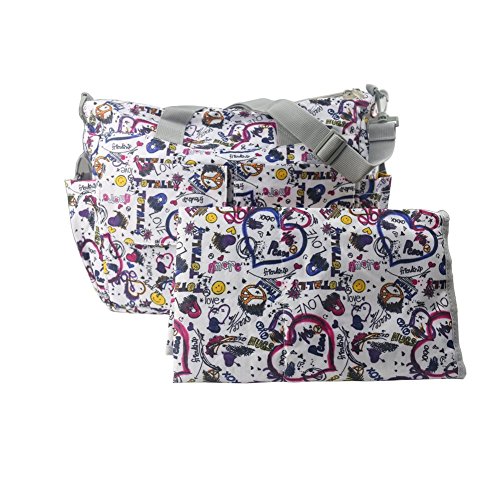 You can carry everything you need in the nappy bag with its multiple interior and exterior pockets. Durable double tote straps.the size of the diaper pad is about 55*65cm.and the shoulder strap can be adjustable.