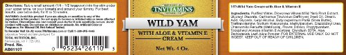 -. Binding : Health and Beauty -. Brand : TNVitamins -. EAN : 0095234261105 -. Feature : With aloe & vitamin E* / No greasy residue* / Apply daily for best results* / No Artificial Color or Fragrance* / Diosgenin or wild yam is often promoted as a "natural alterative" to estrogen therapy* -. IsAdultProduct : 0 -. Label : Total Nutrition -. LegalDisclaimer : *Information provided is intended for general knowledge. It is not a substitute for professional medical advice or treatment for specific medical conditions. Always seek the advice of your physician or other qualified health care provider with questions you may have. Any information provided is not intended to diagnose, treat, cure or prevent any disease. This statement has not been evaluated by The USFDA. This product is not intended to diagnose, treat, cure or prevent any disease. -. Manufacturer : Total Nutrition -. MPN : AB6110 -. PackageQuantity : 1 -. PartNumber : AB6110 -. ProductGroup : Beauty -. ProductTypeName : HEALTH_PERSONAL_CARE -. Publisher : Total Nutrition -. Size : 4 Ounces -. Studio : Total Nutrition -. Title : Wild Yam Cream 4 oz. -. UPC : 095234261105