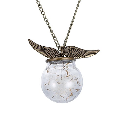 -. Title : WeiVan Vintage Dandelion Seeds Necklace Glass Wish Bottle Pendant Bronze Chain with Angel Wing Charm