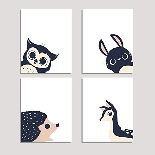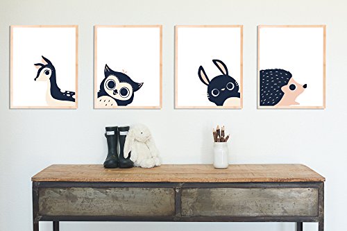 Peeking Animal Collection, Children's Wall Art Prints, Set of Four 11x14 Prints, Forest Nursery, Gender Neutral Nursery Decor, Rabbit, Deer, Owl,...