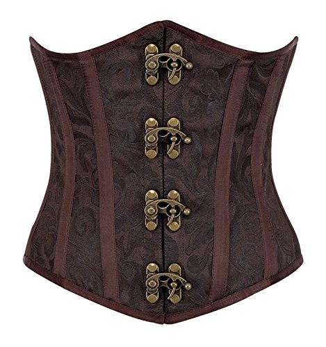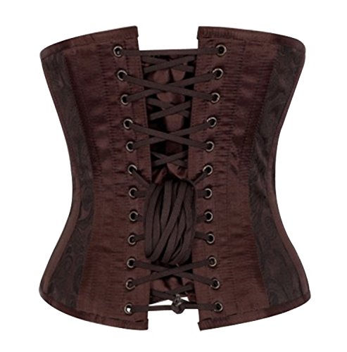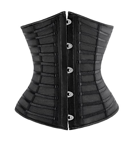 Binding : Apparel Product Description You will never see such high quality underbust corset. This is women's vintage black spiral steel boned underbust corset, used jacquard weave fabric and faux leather panel side improve corset grade, two side rope lacing accent, metallic clasp closure in the front, lace-up in back, matching g-string.
